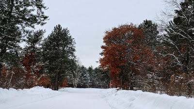 A nice view from up here. We're headed to the Trading Post in Barnes for lunch. Some of the Oaks really hold there leaves well into the winter.